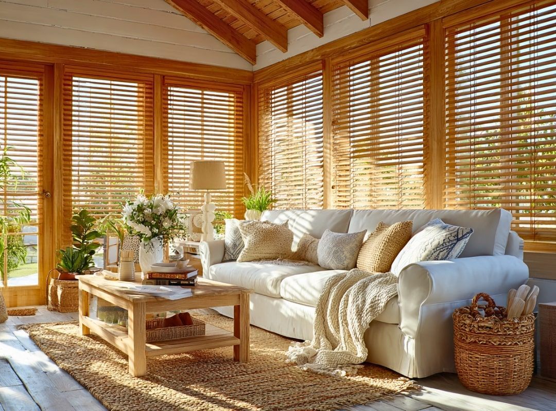 - Wood or Faux Wood Blinds. Introduce warmth and structure.